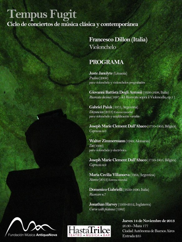 Obras barrocas de compositores italianos en conjunto con obras de Jonathan Harvey (Inglaterra), Juste Janulyte (Lituania), Gabriel Paiuk (Argentina), Walter Zimmerman (Alemania) y María Cecilia Villanueva (Argentina)